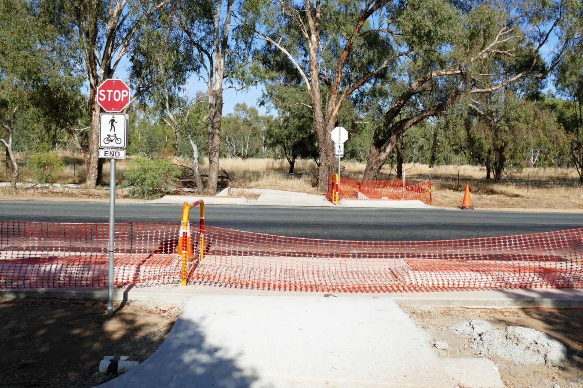 The Bakers Lane section and short section of path which will link it to Mitchell Road are still to be finished and remain a construction site, while minor works are still to be completed on the path along Elizabeth Avenue.